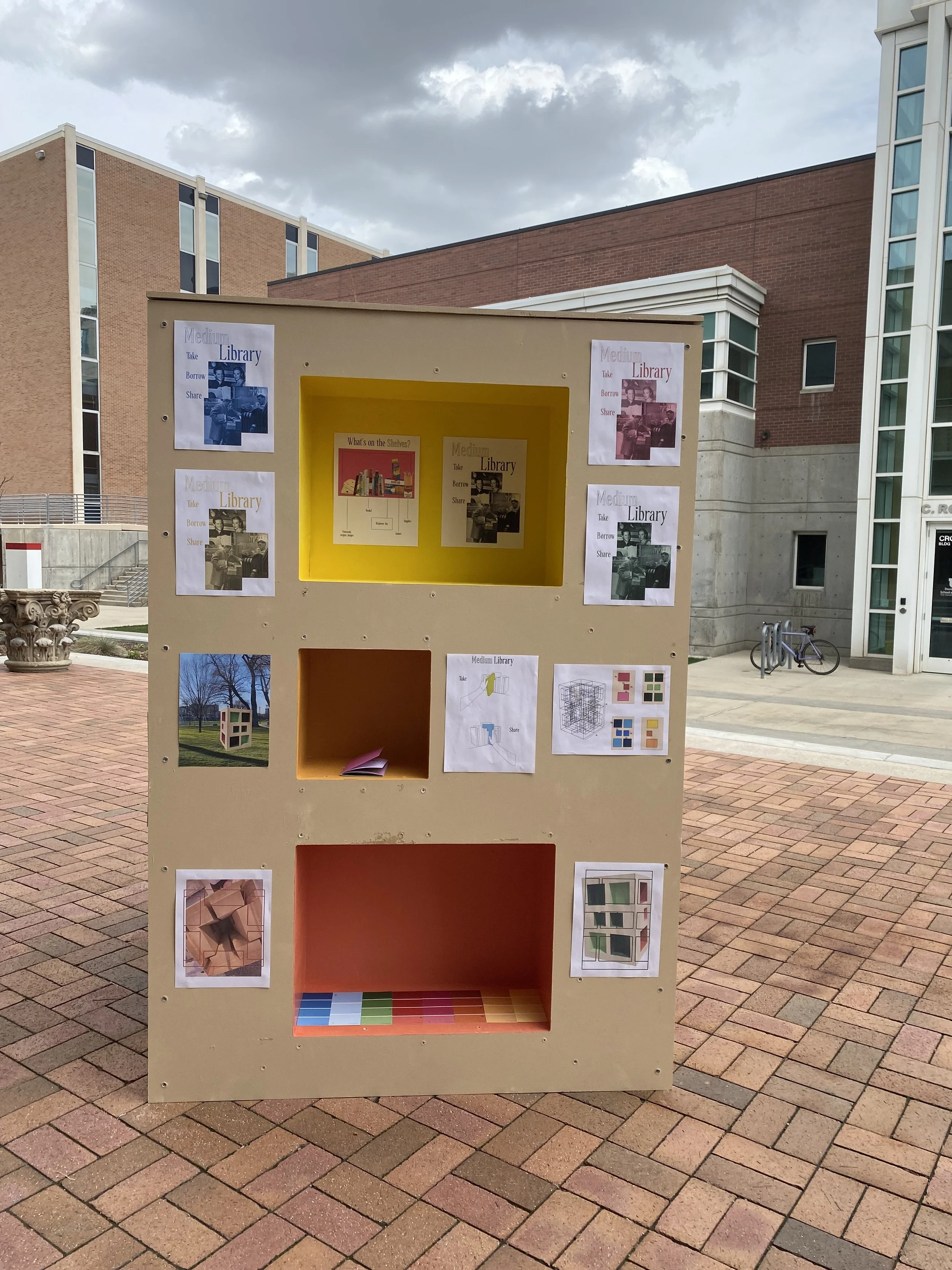 Medium Library encourages people to take, leave, or borrow and share. As a proposed permanent installment in a park in downtown Salt Lake City, this intervention identifies gaps in services available to a community, but optimistically enlists the same community to look out for each other.