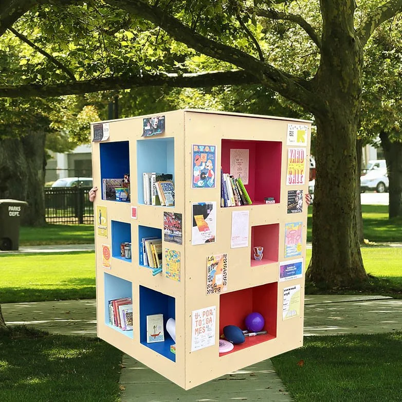 We were inspired by the idea of a “Little Free Library”, small hand-built libraries in our neighborhoods that encourage people to “take a book, leave a book” and scaled it, dubbing it the “Medium Library”.