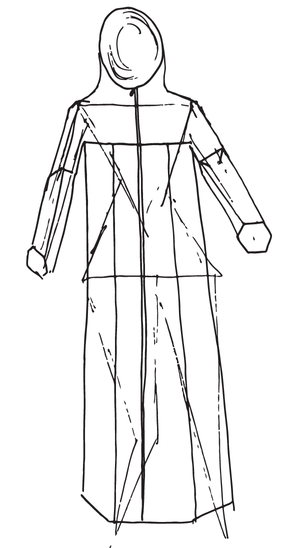 We modify our bodies every day as we dress for the season, location, activity. Clothing has changed over time to reflect what the surroundings require. The overcoat is the barrier between wearer and environment. It enables engagement with surroundings by encapsulating the body while allowing for mobility.