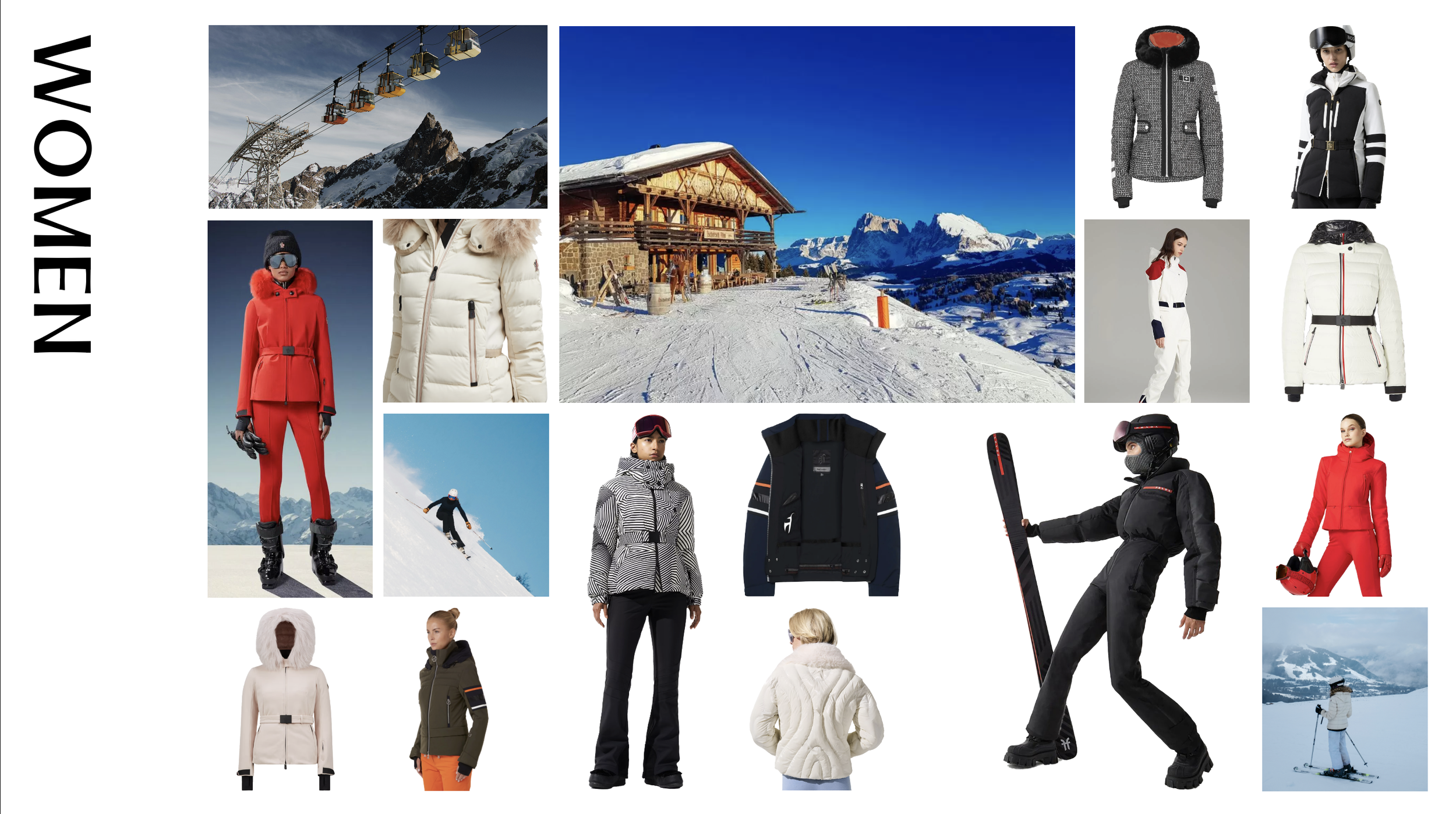 Mood board and precedence for sportswear brand creating a ski jacket. Taking the idea as a whole, and exploring the different ephemeral and technical details that go into the eventual design.